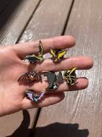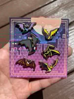 0.75" - 1" mini bat fillers for all your bat needs! These are gold-plated and are perfect to squeeze into spaces on your pin board and pin onto your lanyard.